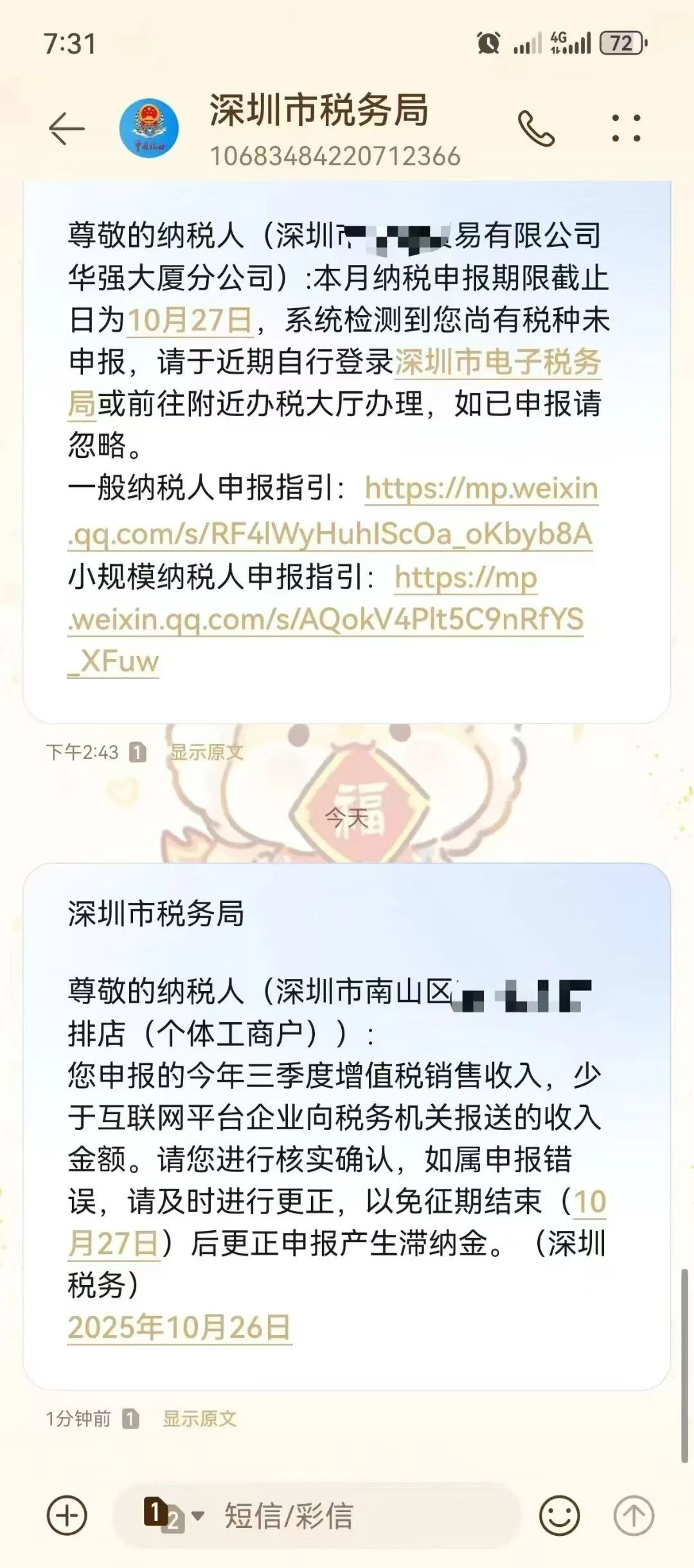 您收到税务局的这条短信了吗?